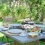 Nogle af værelser på hotellet har udsigt over haven. De er udstyret med et bidet og en bruser.